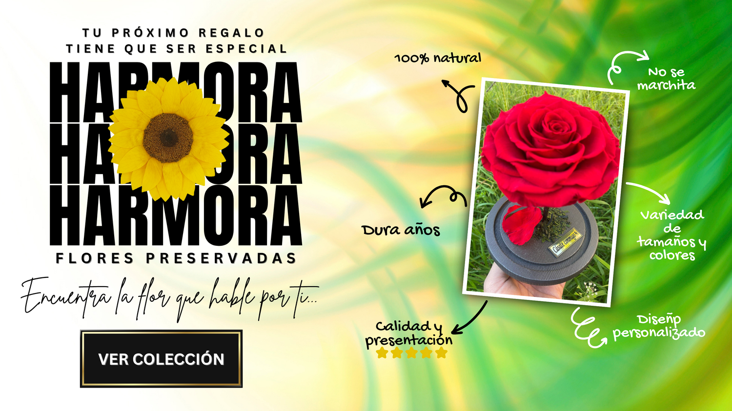 Las flores de HARMORA son 100% naturales. Estas han sido sometidas cuidadosamente a un proceso de preservación, el cual permite detener su descomposición y mantener su apariencia fresca y colorida por un período que puede durar meses e incluso años con los cuidados adecuados.