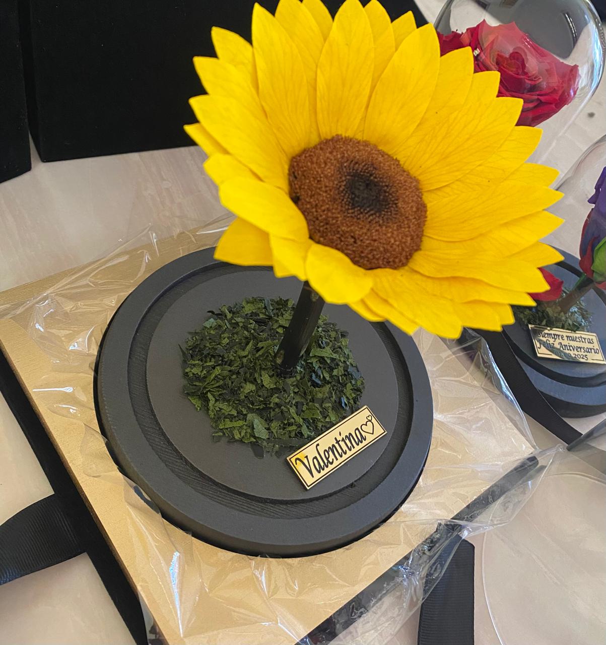 Imagina regalar una flor que no solo deslumbre por su belleza y durabilidad, sino que también lleve grabado un nombre, una fecha especial, una frase que toque el alma. Esa pequeña placa transforma tu obsequio en un recuerdo imborrable, una emoción que revive cada vez que se mira. Porque los detalles importan. Y cuando se trata de emocionar, una flor con palabras propias puede decir más que mil regalos. Hazlo único. Hazlo inolvidable. Crea un regalo que impacte, emocione y permanezca.