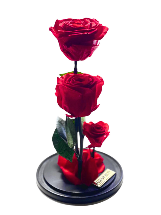 Precio habitual $89.990Precio habitualPrecio unitario / por$89.990Precio de oferta $89.990El Trío PASIÓN presenta tres rosas rojas preservadas, cuidadosamente dispuestas bajo una cúpula de vidrio que protege y realza su belleza natural. Esta composición elegante y duradera es ideal para expresar sentimientos profundos con un toque sofisticado, manteniendo la frescura y el color vibrante de las flores por mucho tiempo. Perfecto para regalar en ocasiones especiales o para decorar espacios con un símbolo clásico de amor y pasión.